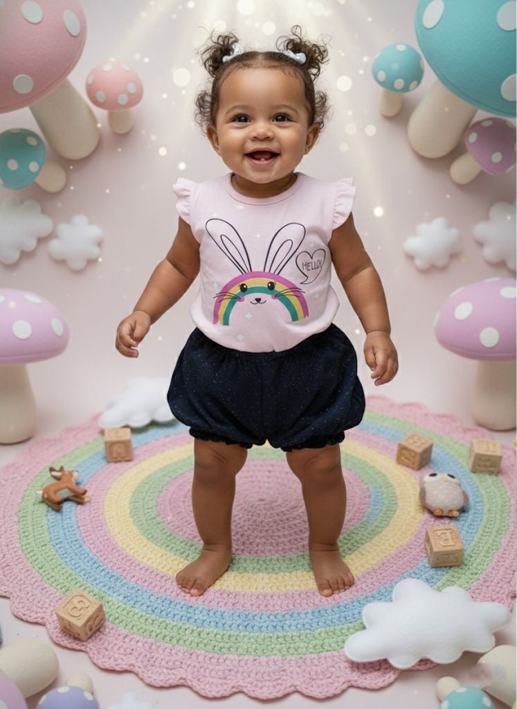 Conjunto Coelho Arco-Íris Rosa
